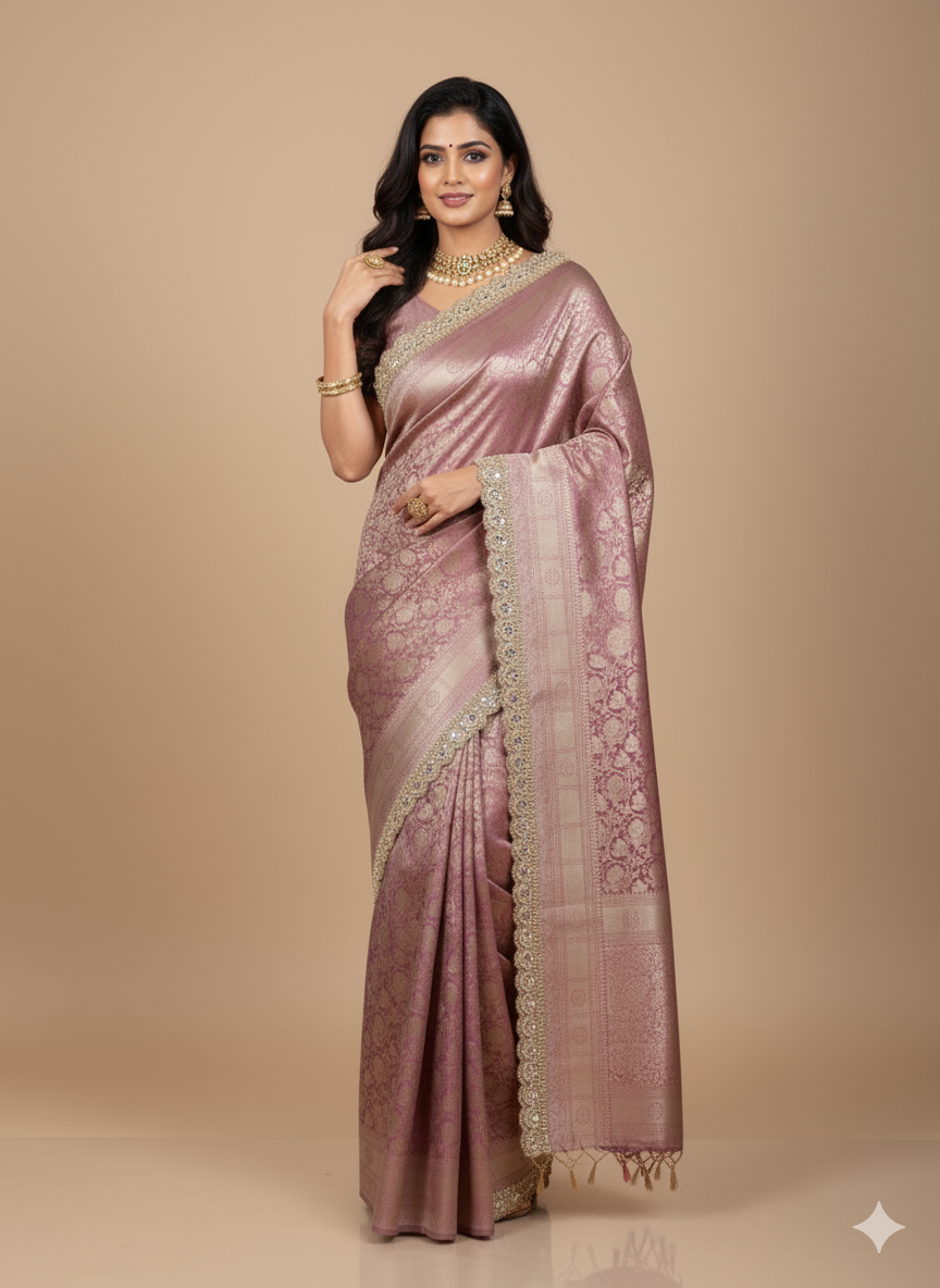 lavender Tissue Brocade Saree | Handcrafted Zari Lace | Festive Wear